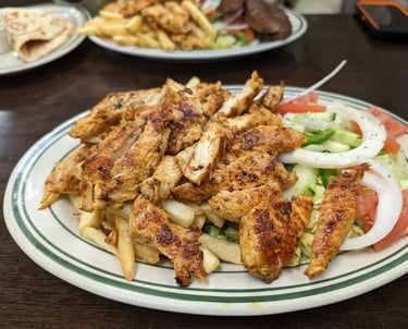Our lunch menu boasts incredible Greek options, including savory Gyro and Chicken Souvlaki platters served with all the traditional fixings, as well as classic Spinach Pie for a fast and flavorful midday bite.